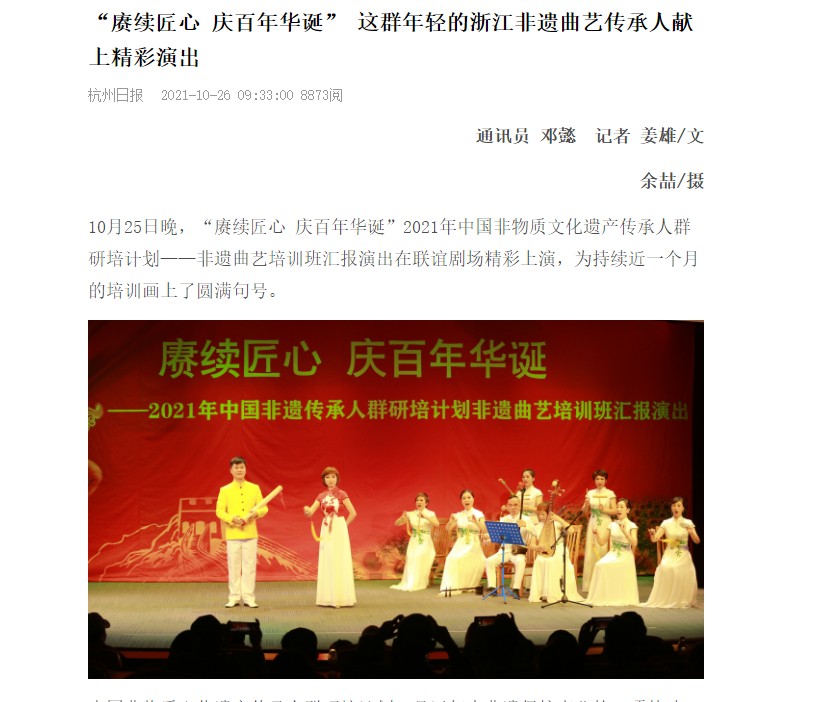 杭州日报:“赓续匠心 庆百年华诞” 这群年轻的浙江非遗曲艺传承人献上精彩演出