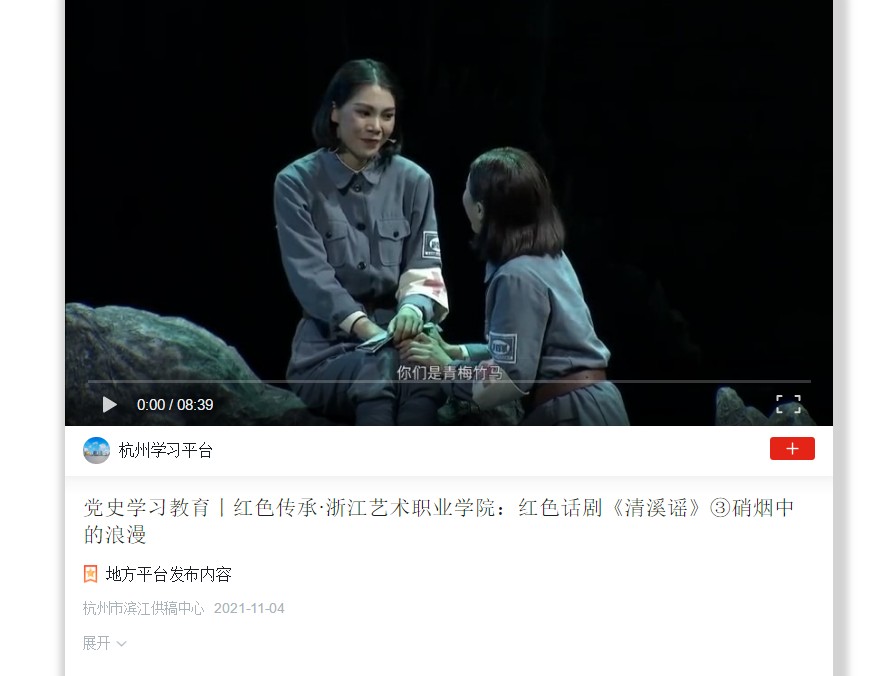 学习强国:党史学习教育丨红色传承·浙江艺术职业学院:红色话剧《清溪谣》③硝烟中的浪漫