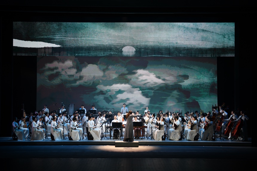 本场民族管弦乐音画秉持民乐主题,遵循南宋精致、典雅的美学特色,深度融合诗词、绘画、书法等艺术讲述,并辅之以多媒体数字科技赋能,将作品从单一的听觉维度迁移到包裹性更强的情境性维度,从而呈现沉浸式、多元交互式的乐、舞、诗、画独造空间,让观众体验被当下重构的中国古典文化艺术意境。通过民族管弦乐音画这一具备中国气派、浙江辨识度和国际化语汇的艺术形式,展示“文化浙江”“诗画浙江”,弘扬民族音乐,奏响时代旋律,惊艳美丽中国。
