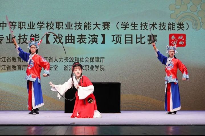 金秋九月,丹桂飘香,喜看梨园,蓓蕾绽放。9月21日-22日,由浙江省教育厅、浙江省人力资源和社会保障厅主办,浙江省教育厅职成教教研室、浙江艺术职业学院承办的2022年浙江省中等职业学校职业能力大赛(学生技术技能类)艺术专业技能(戏曲表演)赛项在浙江实验艺术剧场举行。本次大赛共有来自省内金华、嵊州、温州、绍兴、余姚、杭州六个地市的参赛队参加。