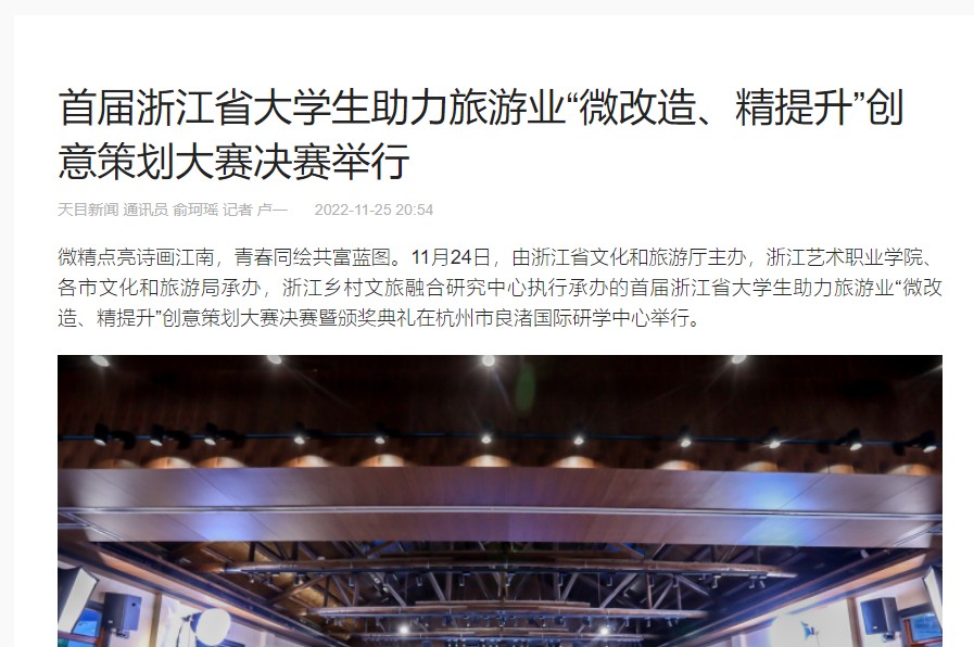 天目新闻:首届浙江省大学生助力旅游业“微改造、精提升”创意策划大赛决赛举行
