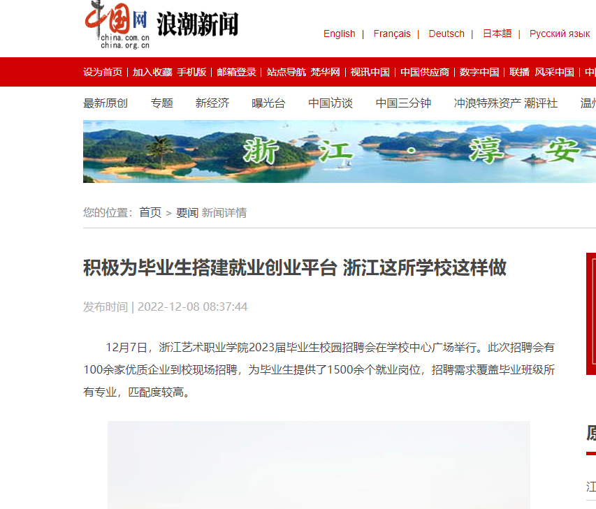 12月7日,浙江艺术职业学院2023届毕业生校园招聘会在学校中心广场举行。此次招聘会有100余家优质企业到校现场招聘,为毕业生提供了1500余个就业岗位,招聘需求覆盖毕业班级所有专业,匹配度较高。