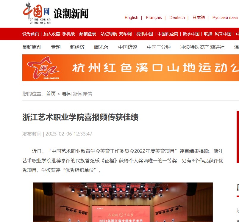 近日,“中国艺术职业教育学会美育工作委员会2022年度美育项目”评审结果揭晓,浙江艺术职业学院推荐参评的民族管弦乐《征程》获得个人奖项唯一的一等奖,另有8个作品获评优秀项目,学校获评“优秀组织单位”。