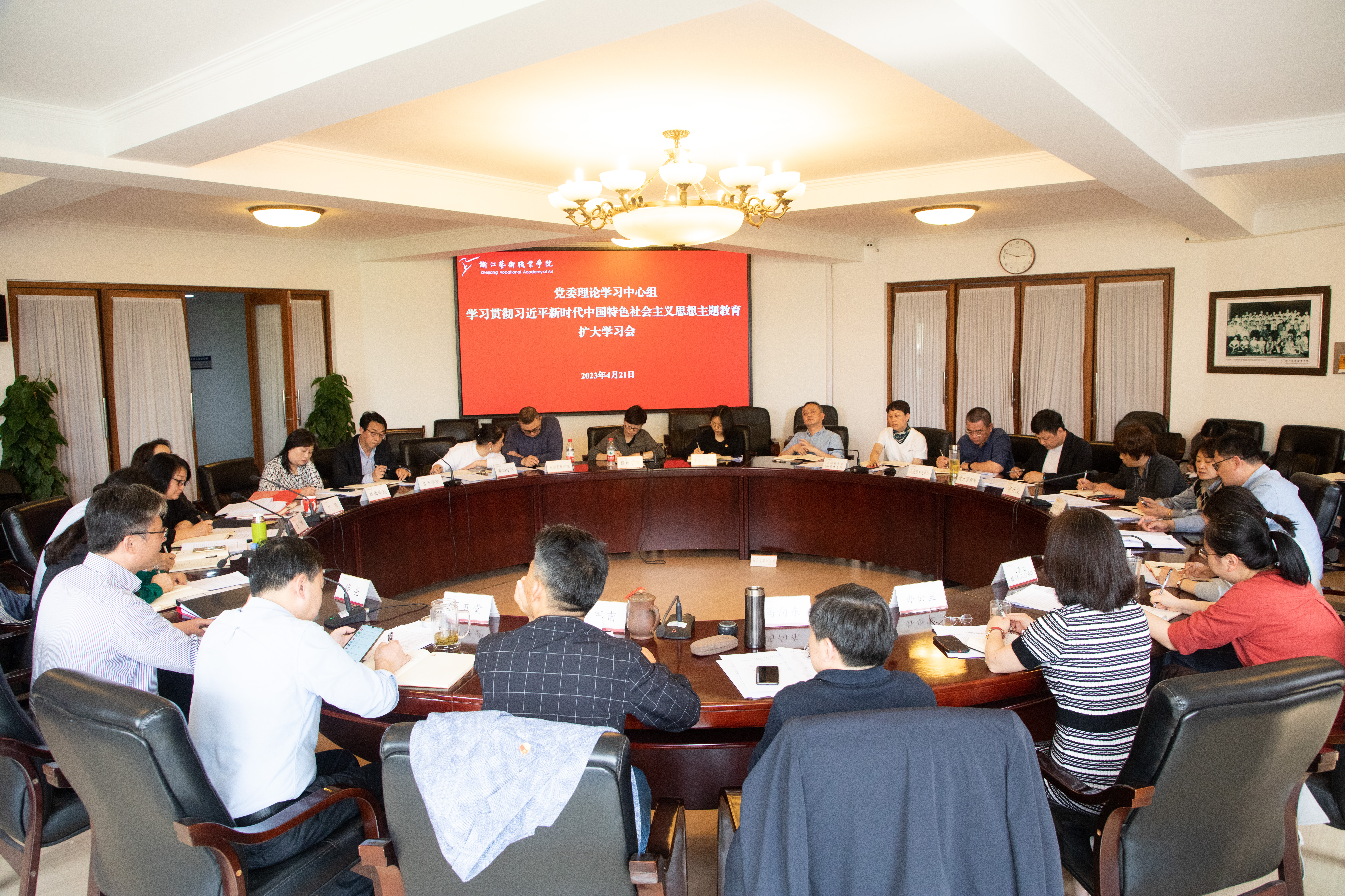 4月21日下午,浙江艺术职业学院召开学习习近平新时代中国特色社会主义思想主题教育党委理论学习中心组扩大学习会,结合主题教育要求,以“大兴调查研究”为主题,积极谋划学校高质量发展新思路。校党委书记薛亮主持学习会,校党委班子成员参加学习会,职能教辅部门负责人、二级学院党政主要负责人列席学习。
