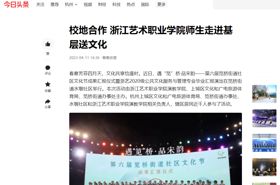 今日头条:校地合作 浙江艺术职业学院师生走进基层送文化