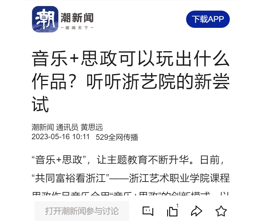 潮新闻:音乐+思政可以玩出什么作品?听听浙艺院的新尝试