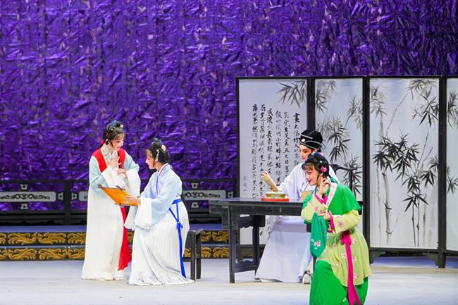 此次青春版越剧《五女拜寿》的首演,生动展现了校团双元越剧人才培养的育人成果。这与本届综合展演季主题“聚”相得益彰、相融相长。
