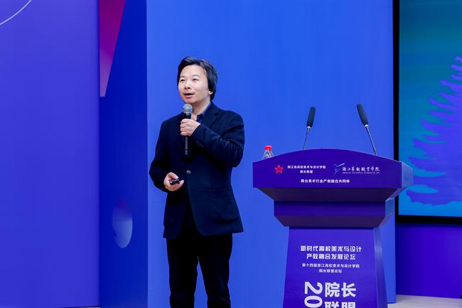 联盟副秘书长、浙江艺术职业学院校长、党委副书记施俊天为论坛作开幕致辞和会议总结。他指出,随着社会对艺术和设计人才需求的日益多元化,产教融合已经成为推动高校美术与设计教育发展的重要途径,把握在新领域新赛道弯道超车的战略机遇,就必须在产教融合中不断丰富高等教育的新内涵。本次论坛围绕三个聚焦:一是聚焦四链贯通,教育链、产业链、人才链和创新链;二是聚焦四个合作,合作办学、合作育人、合作就业、合作发展,实现产业、专业、就业三联动;三是聚焦四景运通,产学场景联通,产研场景畅通,产训场景贯通,产创场景融通。希望通过这次论坛,进一步深化省内美术与设计教育领域的交流合作,进一步强化资源共享、优势互补、协同创新,为浙江省乃至全国高校美术与设计教育的发展做出更大的贡献。