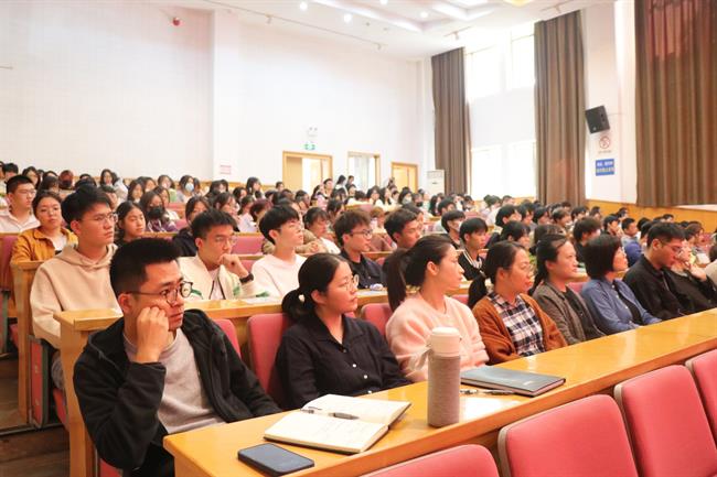 手工艺学院院长助理叶峰泉作“前行在手工艺学习之路上”主题讲解,向全体新生详细介绍了学分制课程结构、课程类型和职业技能鉴定等内容,生动具体地向大家展示了大学三年的学习过程,鼓励新生锐意进取做奋斗者,求真学问,练真手艺。