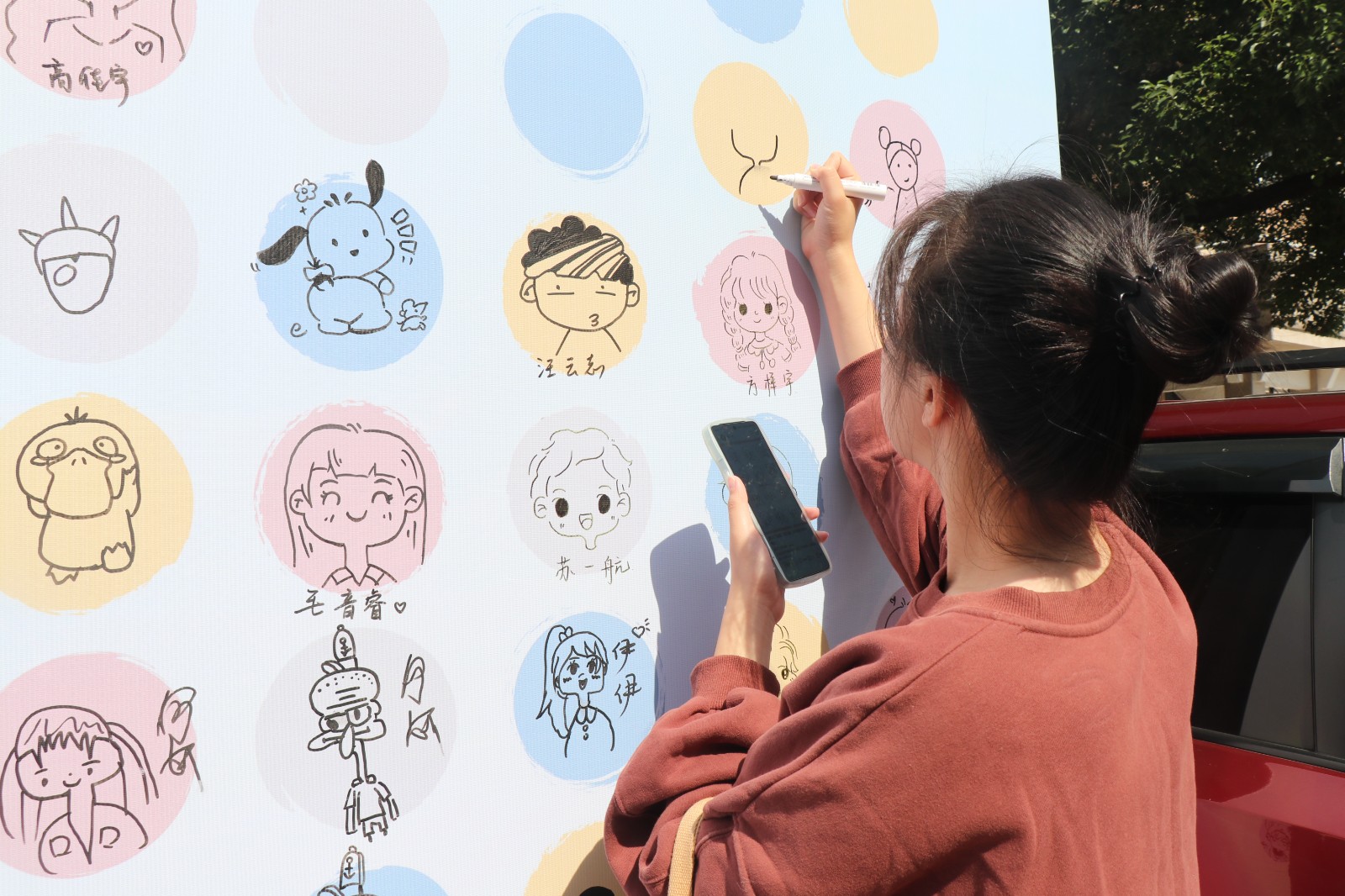 创意涂鸦签到入场,每位新生拿起画笔,带着朝气在签到板上涂鸦作画,用久违的童年彩笔描绘出个性的头像,留下独特的印记。