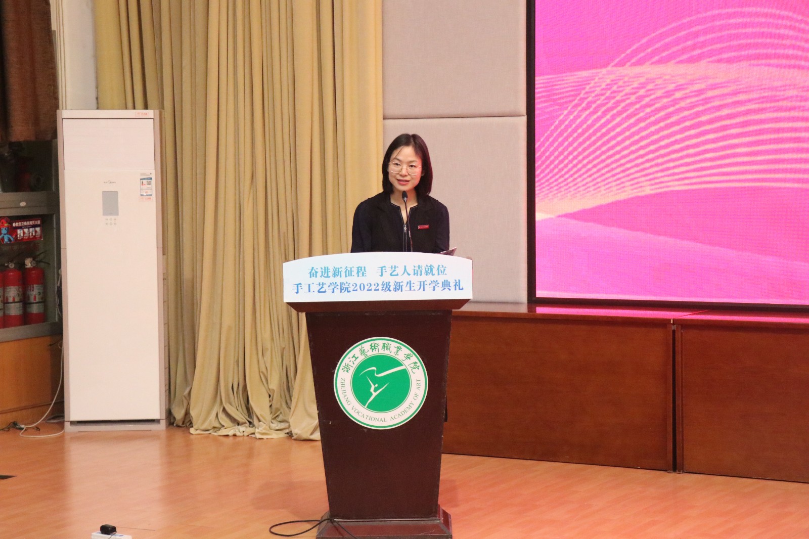 各教研室主任与班主任们上台与新生们见面,并寄语新生们志存高远,怀抱梦想,脚踏实地,刻苦钻研,成为专业扎实、本领过硬的手艺人。