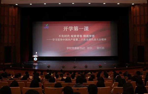 她以“不负时代,绽放青春,铸就梦想”为题,为全体新生上了开学第一课。她表示,同学们生逢其时,当不负盛世,需谨记初心、力行担当,沿着党的二十大擘划的宏伟蓝图从容迈步,延续文脉,筑梦未来,为全面建成社会主义现代化国家增添浙艺风采。她向新生提出三点希冀:一是要修身立德,在心系家国中铸就远大志向;二是要脚踏实地,在勤学奋进中铸就强硬本领;三是要敢为人先,在矢志创新中铸就卓越成长。