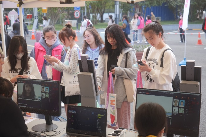 同学们前往“立志园”、“立业园”扫码办理入住手续,领取“新家”钥匙。