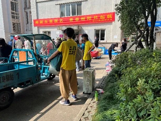 热情的学生党员和志愿者们身穿七彩T恤,积极接待新同学,答疑解惑、指引道路、搬运行李,帮助新生顺利完成各项报到手续。