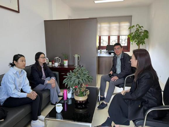 我院团队参观产业基地并介绍了学校建设、专业设置、办学特色等基本情况,希望我校与浙江艾德品牌策划有限公司 、杭州灵山风情小镇旅游投资有限公司开展校企合作的优势和合作方向,能与企业就项目研学及学生实习就业等方面开展合作。