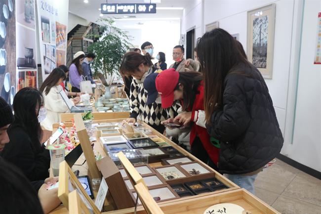 11月29日,“艺•星火”行动计划发布会暨“滨江艺术空间”揭牌仪式在浙江实验艺术剧场举行。手工艺学子们以非遗为基,以创意为笔,参加手工艺作品市集、非遗文创展览,展现非遗新风采。本次市集融合了文创讲解、展示展销、非遗体验等多个场景,是展示非遗的保护成果以及衍生创意的一个舞台。现场气氛热烈,每个人都兴致勃勃地观赏和购买自己的中意之物。