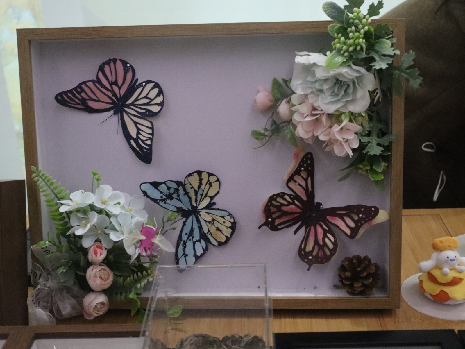 “博物衍生”的摊位上,也有令人眼前一亮的惊喜文创。展示艺术设计专业的同学们将自然与文创产品结合,制作的蝴蝶标本小巧且精致,在感受自然的同时也让人感慨其独特技艺。