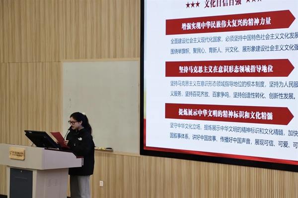 22定向1班朱含蕾,以党的二十大开篇,自然道出文化自信的重要性。红色历史,红色血脉处处都在提醒我们爱国爱党。拾起家乡非遗作品,让文化代代相传。历史照亮未来,征途未有穷期。青年应坚定文化自信,为祖国发展注入源源不断的最基础、最深沉、最持久的力量。