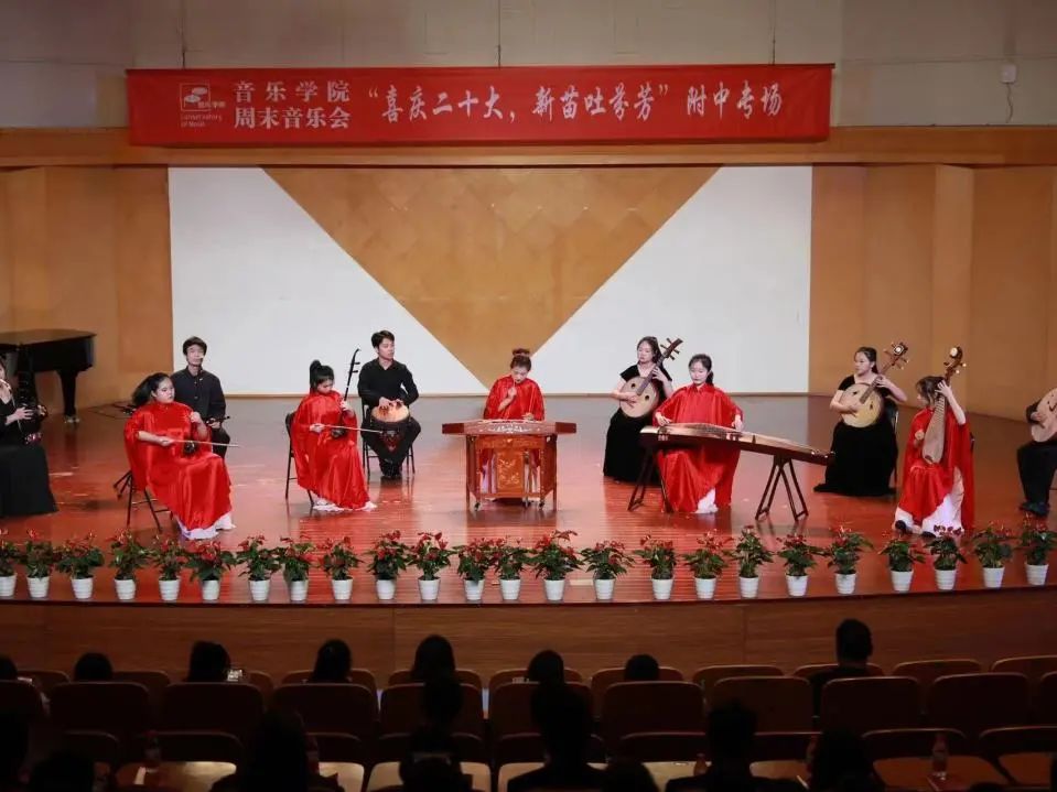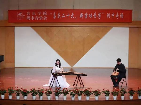 11月4日晚,音乐学院周末音乐会系列演出之“喜庆二十大 新苗吐芬芳”附中专场在浙艺音乐厅举行。附中新苗们给大家带来的节目既有中国民族乐器多元化的呈现,也有西洋管弦交汇的奇妙感觉。学院师生及部分附中家长观摩了演出。