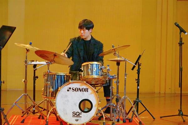 求艺之路漫漫。为了追逐心中的爵士梦,胡珂帆在专业老师的指引下,先后跟随浙艺留美归国打击乐青年教师李根学习小军鼓,英国传奇爵士鼓演奏家Clark Tracey、伯明翰皇家音乐学院爵士系副主任Andrew Bain、爵士鼓演奏家教育家Winston Clifford等老师学习爵士鼓。胡珂帆回忆道:“在浙艺的六年对我来说是一段珍贵且美好的时光,我的专业老师同时还是浙江省打击乐学会秘书长,可以说他是我的专业老师,又不止是我的专业老师,他对我方方面面都多有关心,教学时非常有耐心而且专业性非常强,在学业规划上也让我少走了很多弯路。也特别感谢母校给了我充分的专业发展机会和学习锻炼的平台。”胡珂帆回忆浙艺生活时感叹道。