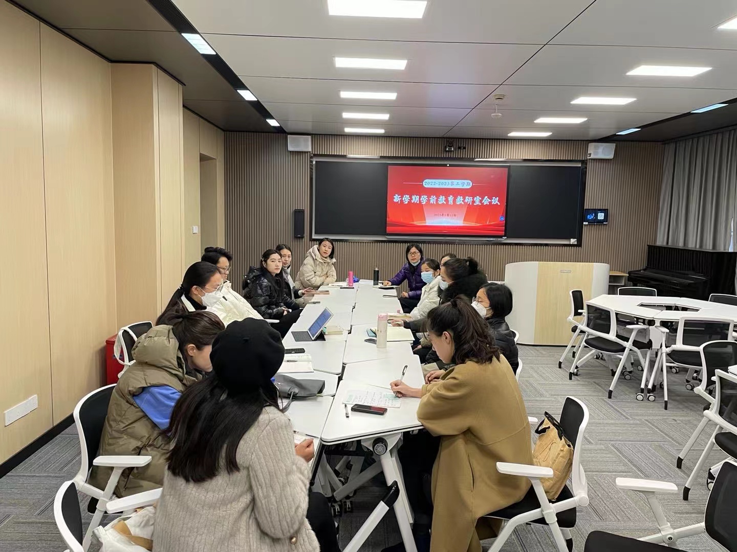 学前教育专业教研室将继续严格课堂纪律,规范教学常规,端正教风学风,组织开展各类实践活动,深入幼儿园开展大一的见习、大二的实训活动、合唱比赛、进阶课程的艺术沙龙并通过各类途径着力提升教研室师资团队的整体教学能力。