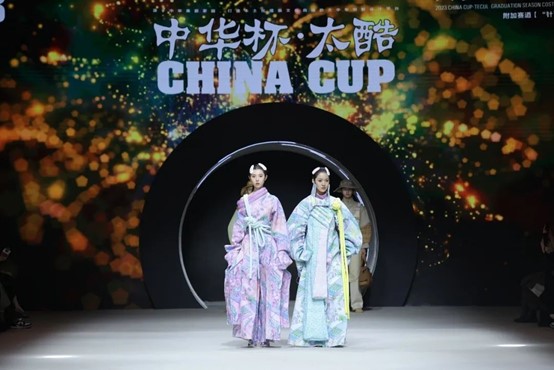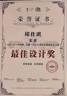 3月27日晚,由中国流行色协会、上海时尚产业发展中心、上海服装行业协会共同主办的“中华杯•太酷”大学生毕业季服装设计大赛决赛暨颁奖典礼在上海静安800秀举行。近千件大学生毕业设计作品,经过初评复评,于当晚角逐评出最终大奖。设计学院服装与服饰设计专业邱佳琪和徐星月的《一卯异樣》作品在全国3000多份作品的选拔中脱颖而出,入围大赛总决赛并荣获主赛道“最佳设计奖”,项敢获优秀指导教师奖。作品在复评阶段即参加了AW23上海时装周MODE商贸订货会,通过订货交易场景直面各地买手,获得商业尝试和实验机会。