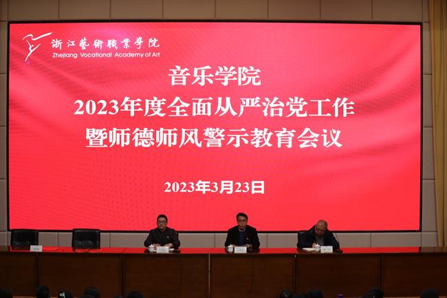 3月23日,音乐学院在学校图信中心报告厅召开2023年全面从严治党工作暨师德师风警示教育会议,传达学习二十届中央纪委二次全会、省纪委十五届二次全会、教育系统全面从严治党工作会议、省级宣传文化系统全面从严治党工作会议精神,传达学校全面从严治党工作会议精神,以“勤廉并重 廉洁从教”为主题,以高质量党建推动事业高质量发展,以高标准师德师风推进音乐学院校风学风教风作风。音乐学院领导班子成员、全体教职工参加会议,音乐学院党总支专职副书记刘梦伟主持会议。