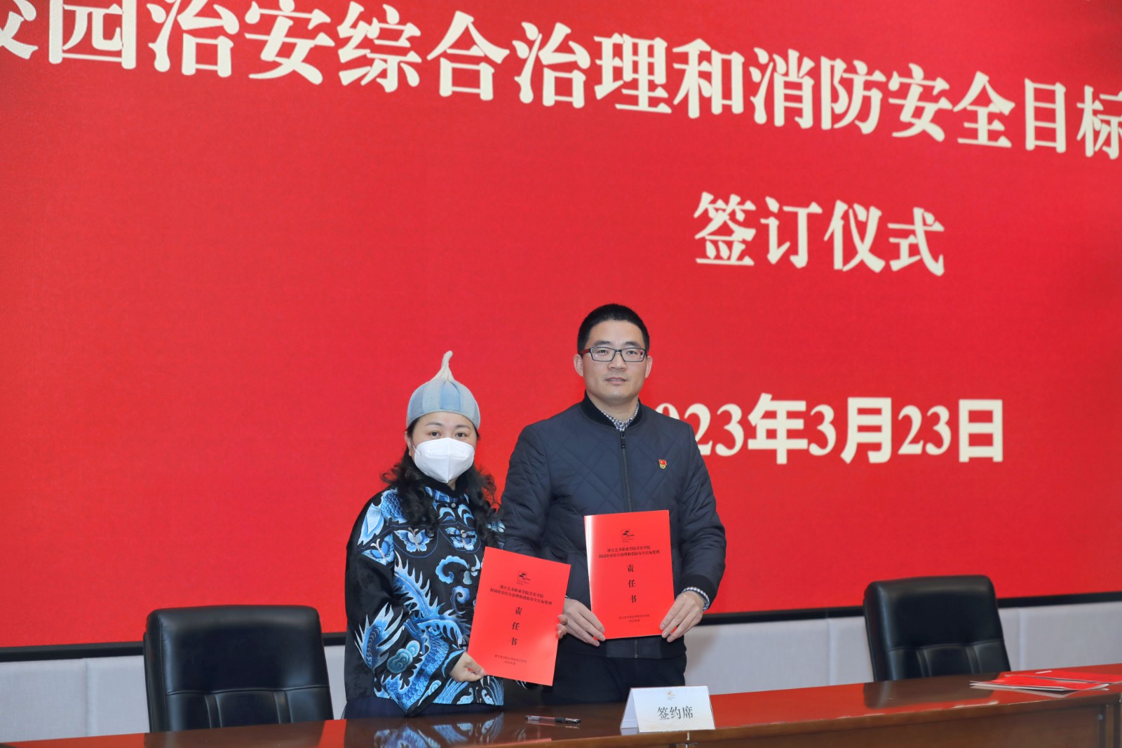 会上签订了2023年度音乐学院党风廉政建设、意识形态工作、校园治安综合治理和消防安全目标管理三项重点工作责任书。