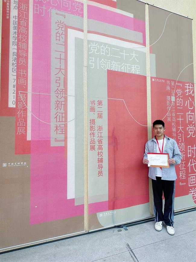 3月15日上午,“我心向党,时代画卷”——“党的二十大引领新征程”第二届浙江省高校辅导员书画、摄影作品展在中国美术学院良渚校区揭幕。我校音乐学院辅导员楼烽老师的摄影作品《美丽家乡》成功入展。