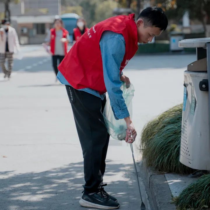 同学们在校门口、教学楼等多个停车区域积极进行志愿服务。扶起、有序摆放非机动车,清理共享单车车篓内的垃圾。经过同学们的努力,非机动车的摆放更具规范性,停车位变加整洁干净。“艺光印象”志愿服务队中“小雷锋”们的行动也影响着路过的同学,发挥着正向引导作用。