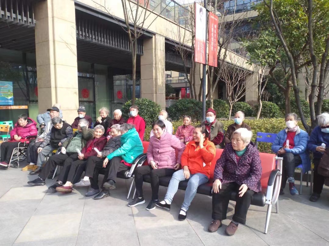 在温暖和煦的阳光中,演教学子们与老人携手排行阵列,似是志愿者们的热情点燃了老人,欢声笑语在养老院的上空不住地盘旋。演教学子各司其职,一系列有序地活动安排让慰问活动顺利开展。