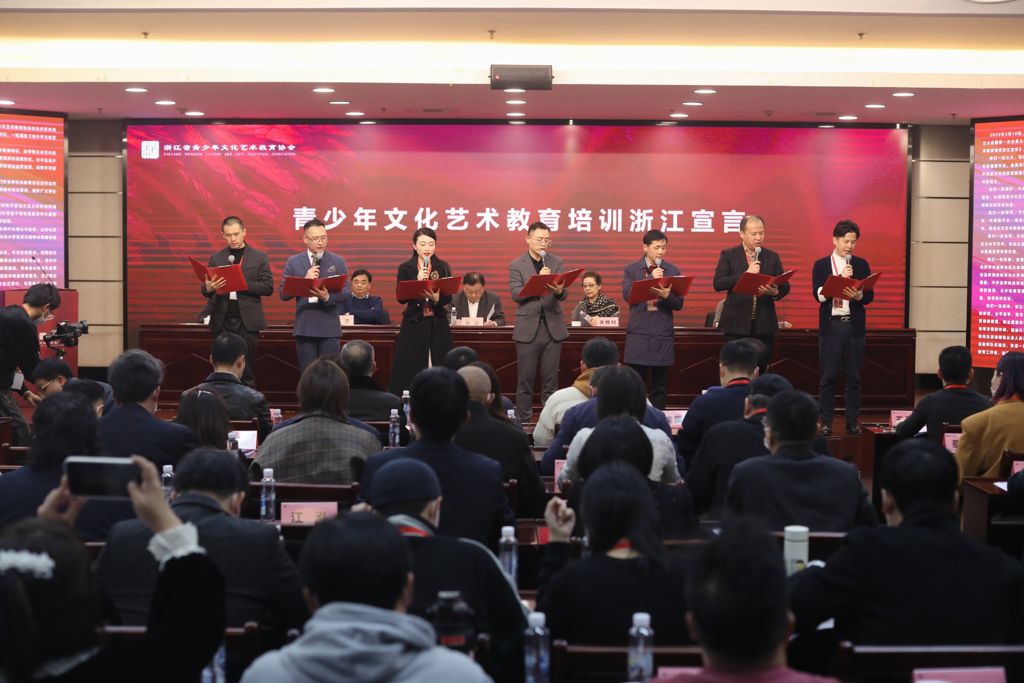会上成立了协会专家顾问委员会,聘任杨立平为专家顾问委员会主任,关牧村、蒋国基、刘忠虎等33位行业专家被聘任为专家顾问委员会委员。另外,本次大会还发布了《青少年文化艺术教育培训浙江宣言》,倡导全面规范文化艺术类校外培训机构行为,提高青少年文化艺术教育培训质量。