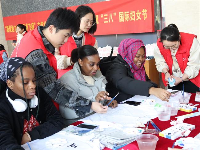 “像这样一勾一勒,颜料就能流畅与衣服贴合了……”3月2日,“艺小匠”走进东信社区,与外国友人携手共绘亚运精彩。“艺小匠”细心指导,一支支画笔、一点点涂画、一遍遍修改,一件件内容丰富、奇思妙想、充满亚运气息的作品完整呈现。