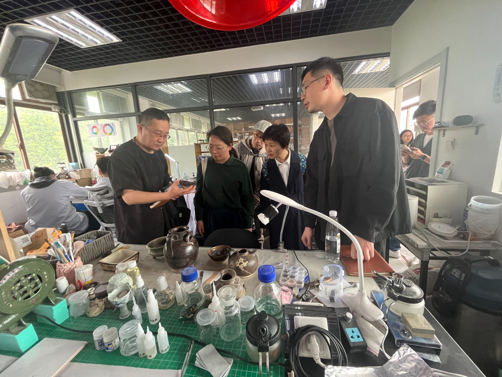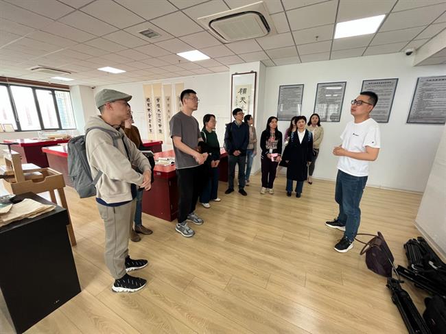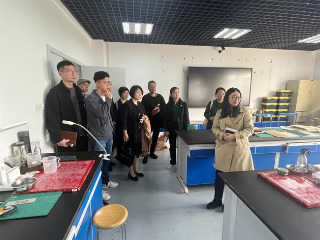 4月21日上午,黄杭娟一行考察调研南京艺术学院人文学院。南京艺术学院党委常委、副校长李彤,校党委常委、党委统战部部长、人文学院院长沈义贞等陪同考察。文物保护与修复系主任周庆介绍了该专业“厚基础、强实力、宽口径、高素质”的培养目标、着重培养学生扎实的文物基础知识、成熟的文物保护修复技艺及通过产学研融合、校地联合培养人才模式等方面的基本情况。非物质文化遗产系主任陈红雨介绍了该专业的办学历史、培养掌握“一门保护理论+一门技艺”的非遗保护管理者、非遗理论研究的综合性人才目标、传统工艺课程开设等方面的情况。座谈会上,双方就人才培养、非遗研培、实践服务、办学模式等方面进行了探讨。随后,黄杭娟一行参观了书画文物修复、陶瓷文物修复、古籍修复等实训场所,观摩了遗技之长——非遗“守正创新”双创教学成果展。