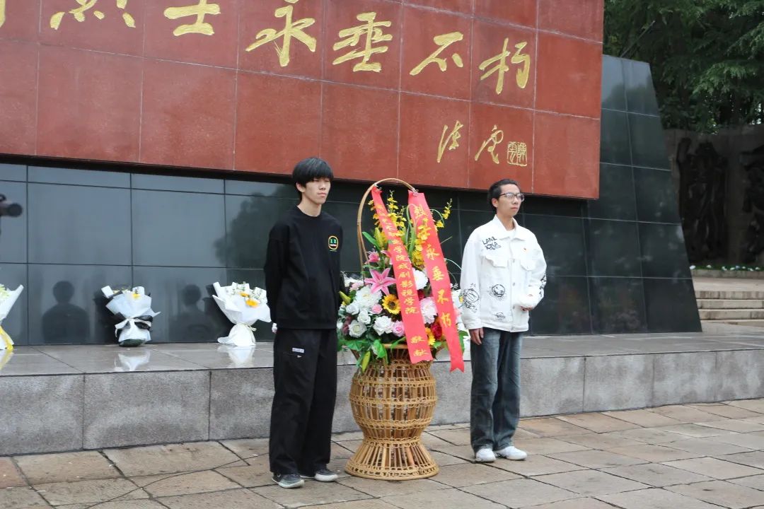青山绿水长留身前浩气,苍松翠柏堪慰逝后英灵。戏影师生怀着对革命先烈的深切哀思,列队肃立,集体默哀,在肃穆中寄托对革命先烈的追思,在缅怀中坚定继承革命遗志的崇高理想。