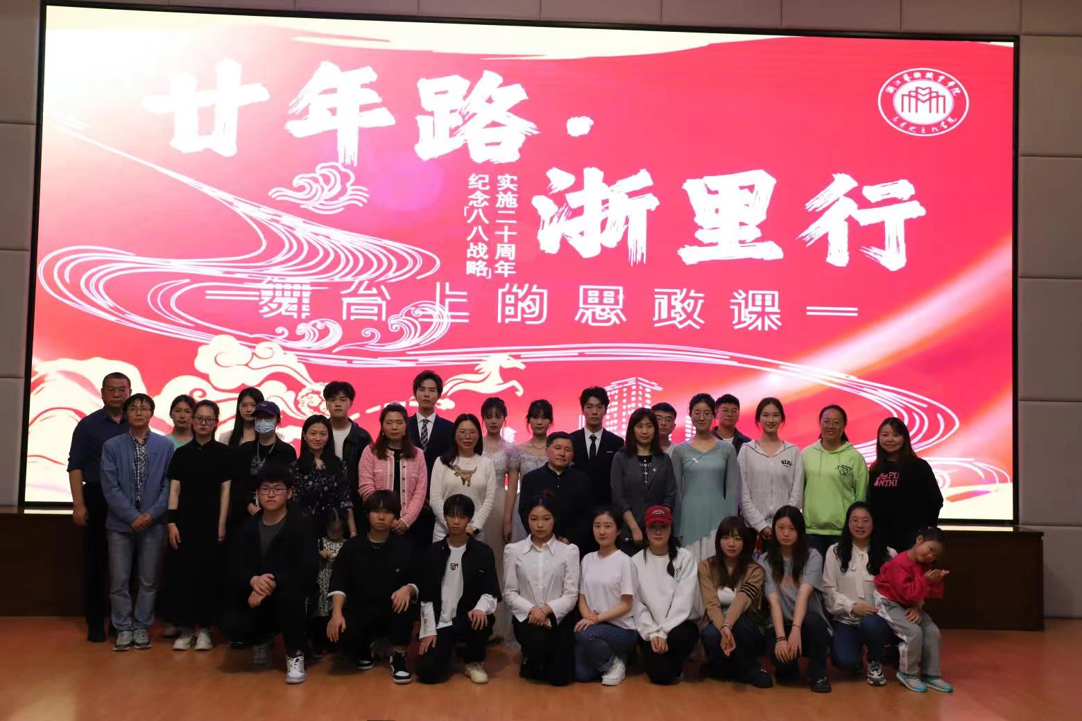 展演作品从44个班级初选节目中脱颖而出,绝大部分为学生原创作品。《良渚来信》通过良渚古人与新时代良渚青年之间展开的时空对话,讲述了良渚申遗成功的故事;《“浙”里文物》讲述了实施“八八战略”二十年来浙江的非遗保护工作成效;《之江词》的歌词在歌词《青花瓷》的基础上填写,通过歌舞的形式表征出在“八八战略”指引下新时代浙江人勇立潮头、开拓进取的精神;原创情景剧《“浙”里英雄秋瑾》讲述了在秋瑾为国为民革命精神影响下新时代青年思想的转变;歌舞《心连心》通过展现不同民族的舞蹈,表达出中华民族命运共同体的理念;原创情景剧《让精准扶贫结出“幸福鸭”》讲述了扶贫一线干部通过说服教育改变被扶贫者“等靠要”心态,帮助贫困户靠发展养殖致富的故事。《家有儿女》生动展现了浙江二十年来在“八八战略”指引下科技、环保、教育、经济、文化等方面取得的显著成就;还有《浙江建设人》《“浙”里文物》等节目精彩演绎,点燃全场观众情绪,让观众们感受到强烈的视觉和情感冲击,深刻领悟了中国共产党的建党初心和光荣历程。