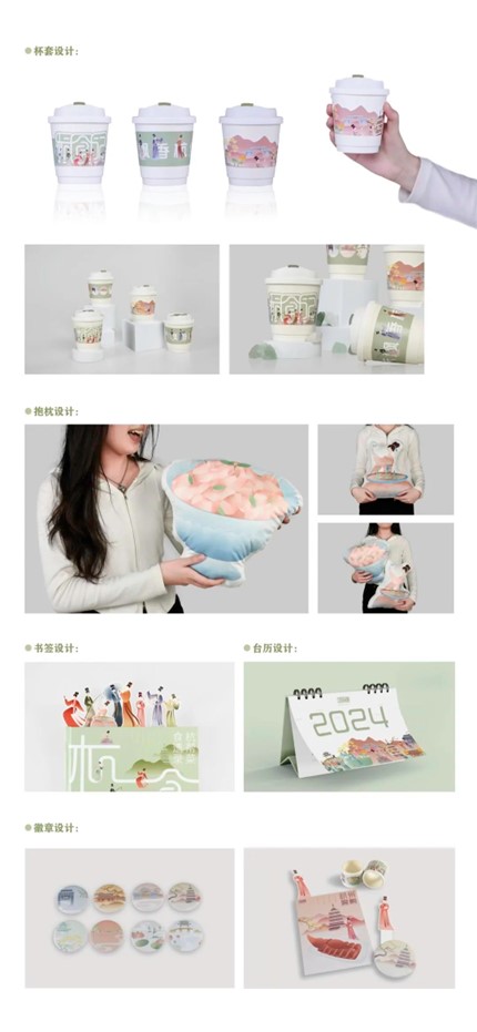 设计说明:该设计以“杭帮菜”为主题,旨在让更多人了解“杭帮菜”的特色与历史,宣传杭州的饮食文化。“杭帮菜”起源于距今一千多年的宋朝,我们将宋韵文化融入到视觉图形插画中,从多方面、多层次诠释“杭帮菜”的定义。以八种经典杭帮菜为主体,将杭州著名景点及建筑融入到花草树木、水泽山川中,再辅以“宋代女子”为蓝本设计的IP人物形象,以视觉鲜明的菜品、淡雅脱俗的景观、精巧动态的人物形象三者合一,创作出全方位宣扬“杭帮菜”与杭州饮食文化的作品。