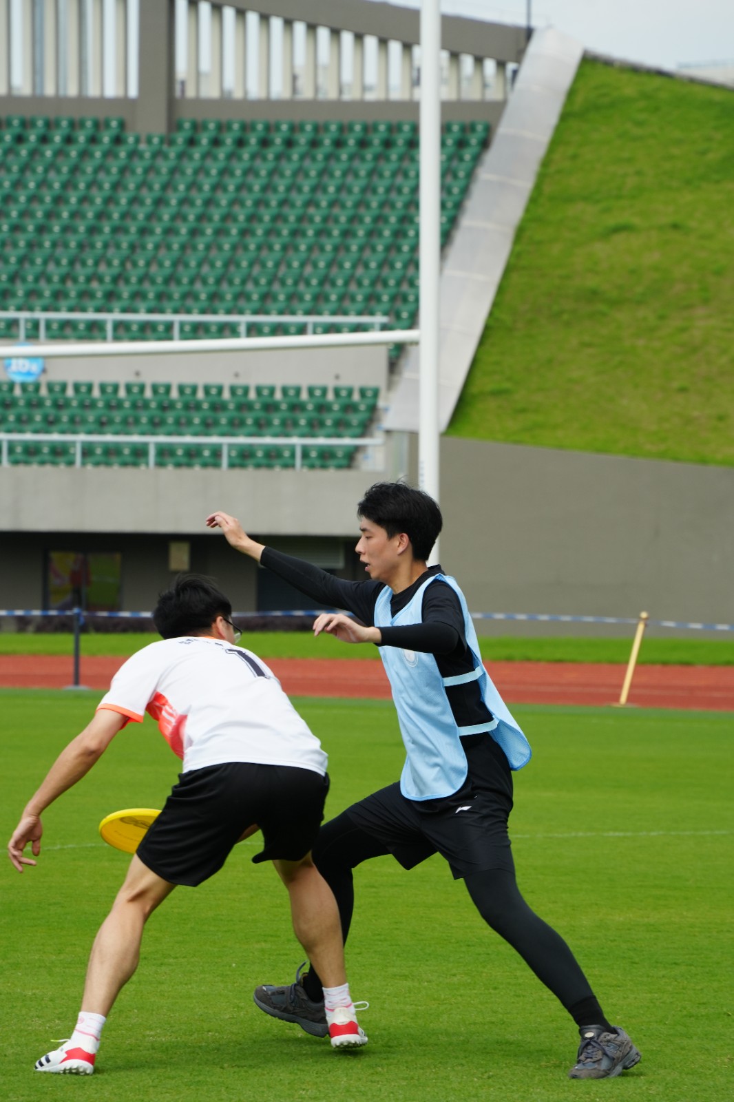 面对我校运动场馆升级改造没有训练场地的困境,学工部积极练习通过外租场地训练、向兄弟院校借场地等方式积极备战,大家都倍感珍惜每一次练习,争分夺秒提升效率。辅导员们在繁重的工作之余进行了为期一个月的训练,经历了大大小小的伤痛,甚至骨裂,但他们从未想过放弃,继续以昂扬斗志飞奔在赛场上,用飞盘画出一道道完美的弧线。