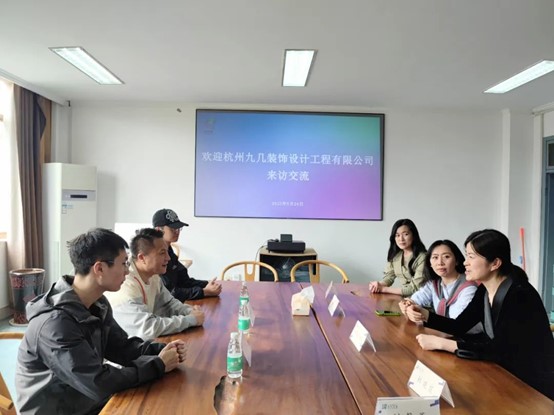 何佳玮对杭州九几装饰设计工程有限公司一行的来访表示欢迎。她介绍了学院的基本情况,并对学院“双高”建设背景下校企合作、人才培养模式作出具体阐释。环境艺术设计专业教研室主任陶靓子介绍了环境艺术设计专业情况,她希望以实践项目植入课程、企业专家进课堂等方式加深合作交流,为学生提供更多发展路径,为企业发展培养更多适用人才。