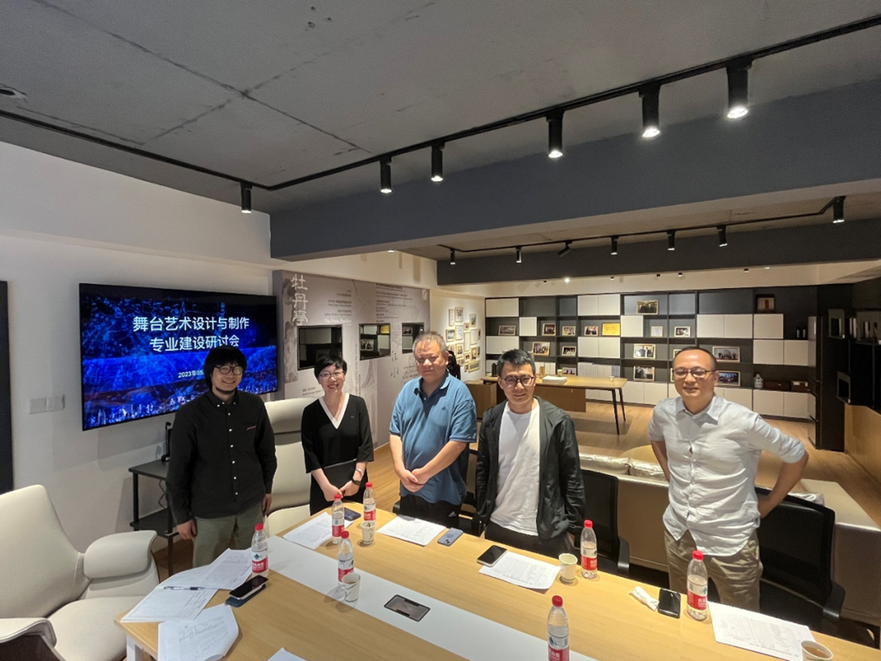 设计学院第三届“哲·艺”学术月通过专题讲座、专业研讨会、走访博物馆、校企合作签约等活动,进一步开阔师生知识眼界,营造良好学术氛围,推动专业建设。为优化专业结构,促进专业建设内涵式发展,进一步提升人才培养质量,6月2日,设计学院在周正平舞台美术导师工作室召开了舞台艺术设计与制作专业建设研讨会。会议邀请浙江京昆艺术剧院一级舞美设计裘冰,浙江天瀚文化发展股份有限公司董事长、一级舞美设计丁卫,浙江传媒学院设计艺术学院副教授张凯出席。设计学院党总支书记汪琳、常务副院长李昌国、舞台艺术设计与制作教研室主任叶文志和全体专业教师参加。会议由叶文志主持。