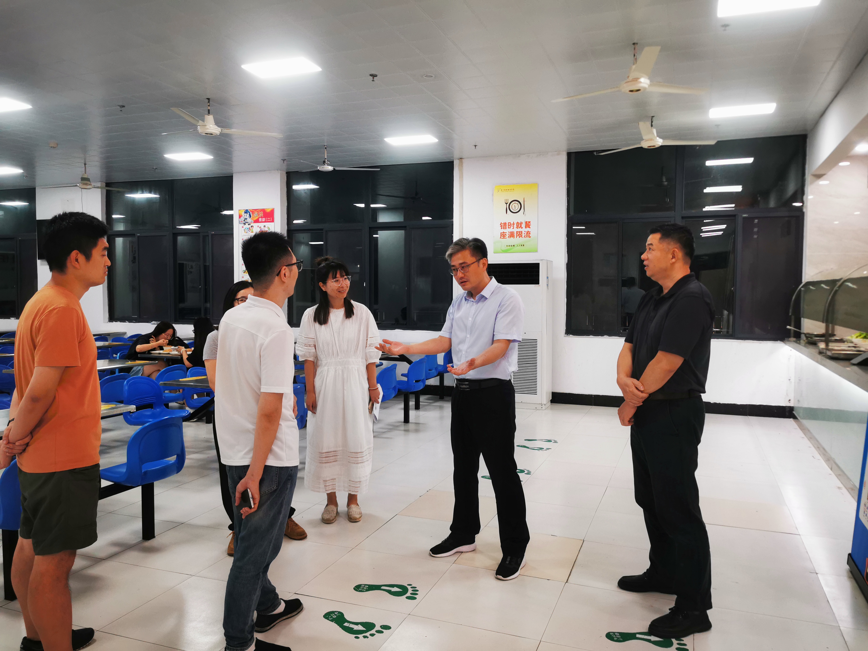 为进一步护航亚运会,做好校园安全稳定工作,9月27日晚,校党委书记薛亮带队走访学生寝室、食堂等场所,查看校园安全,关心学生学习生活。