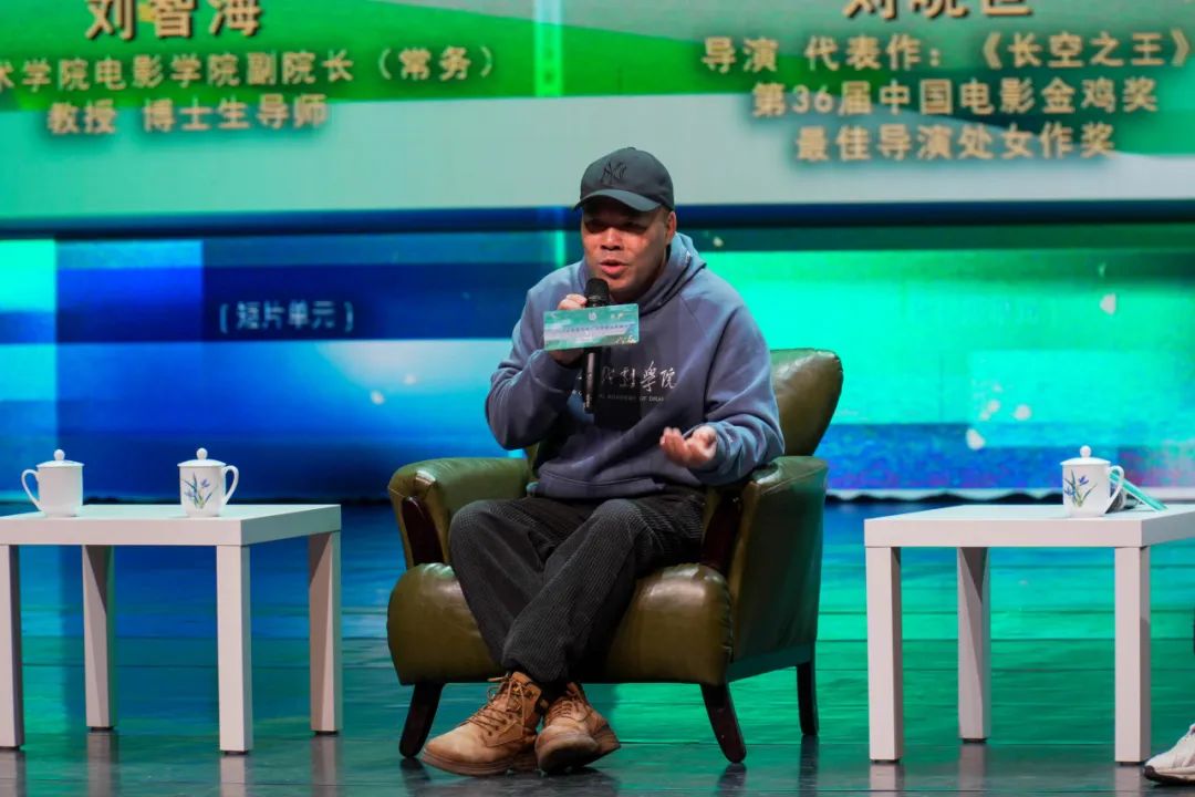 圆桌论坛由中国美术学院电影学院常务副院长、教授、博士生导师,中国电影家协会编剧教育委员会副会长,浙江省电影家协会主席团委员刘智海主持。作为今天的主持人,他以风趣的语言开场,向在场嘉宾提出了三个问题:电影导演的成长之路是怎么样的?每个导演如何建构自己的电影美学?未来有什么电影规划?