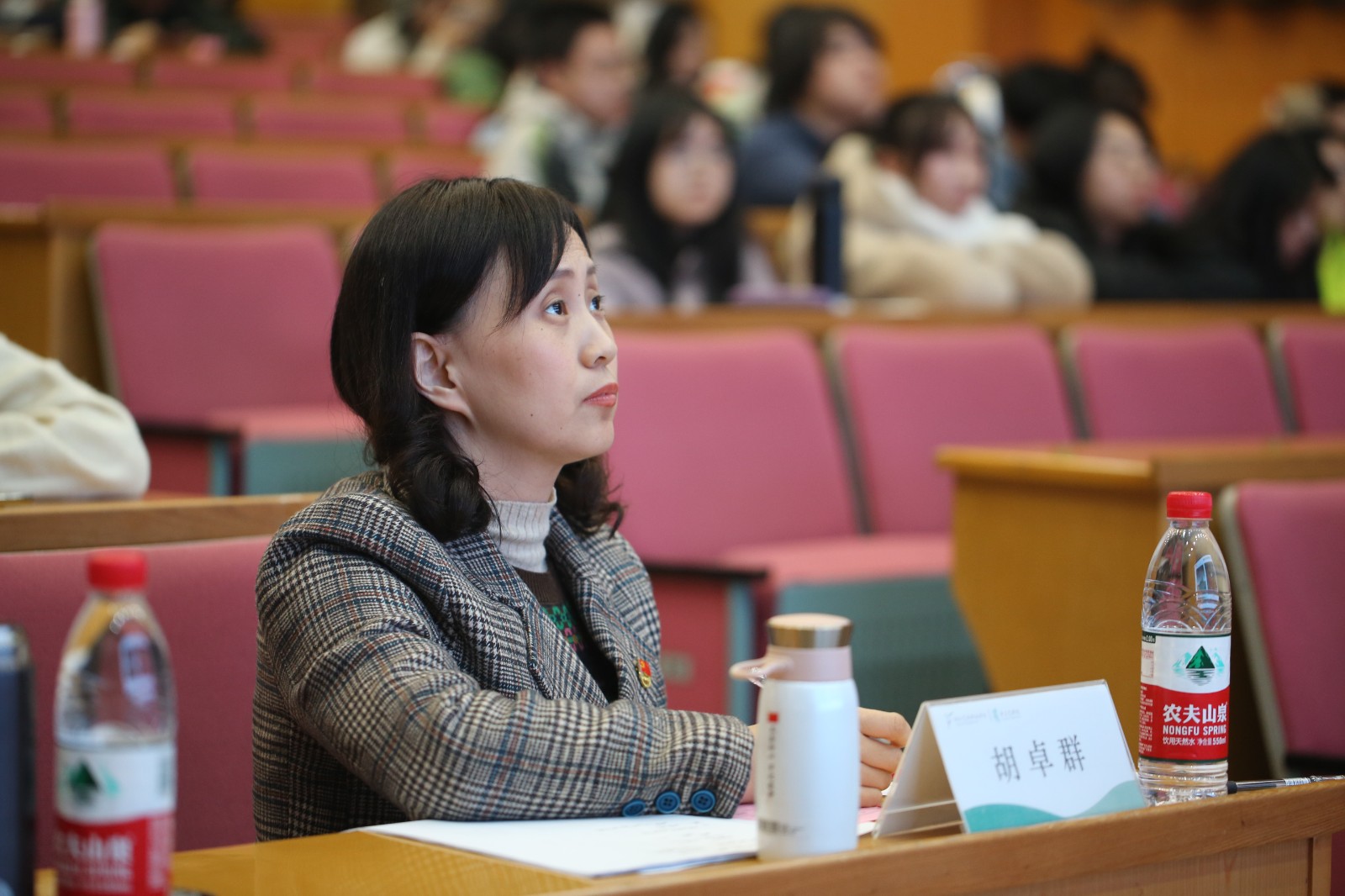 胡卓群在点评中表示,本次比赛充分展现了手工艺学子激昂向上的精神风貌,精彩的讲解和独到的见解体现了手工艺学院的文化底蕴、专业特色和匠人情怀。她充分肯定了选手们的表现,并提出三点指导建议:一是希望选手们深入学习和理解党的理论知识,将其内化于心、外化于行;二是希望大家深入挖掘非遗保护和传承的内涵,在实践中悟思想、明道理;三是期待大家探索工匠精神和非遗赋美的精髓,为传承红色经典和非遗技艺赋予时代光环。