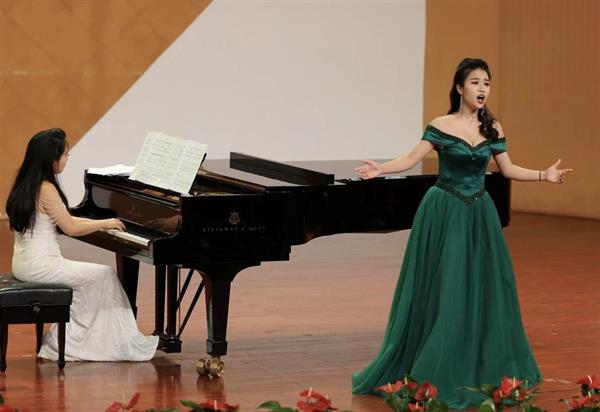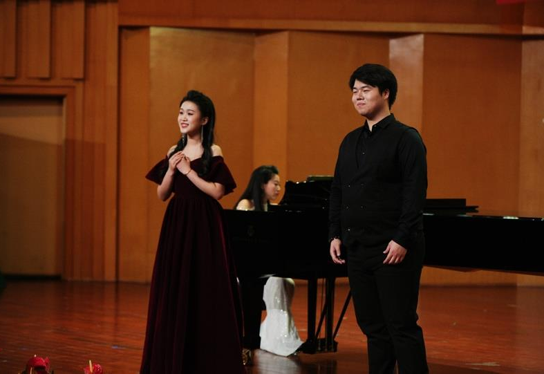 《The Phantom of the opera》是一首观众们耳熟能详的作品。随着前奏的响起,第二位特邀嘉宾,来自浙江艺术职业学院教师蔡敏登场,她与张靖爽完美演出了这一曲经典名作,赢得了观众钦佩的目光和热烈的掌声。