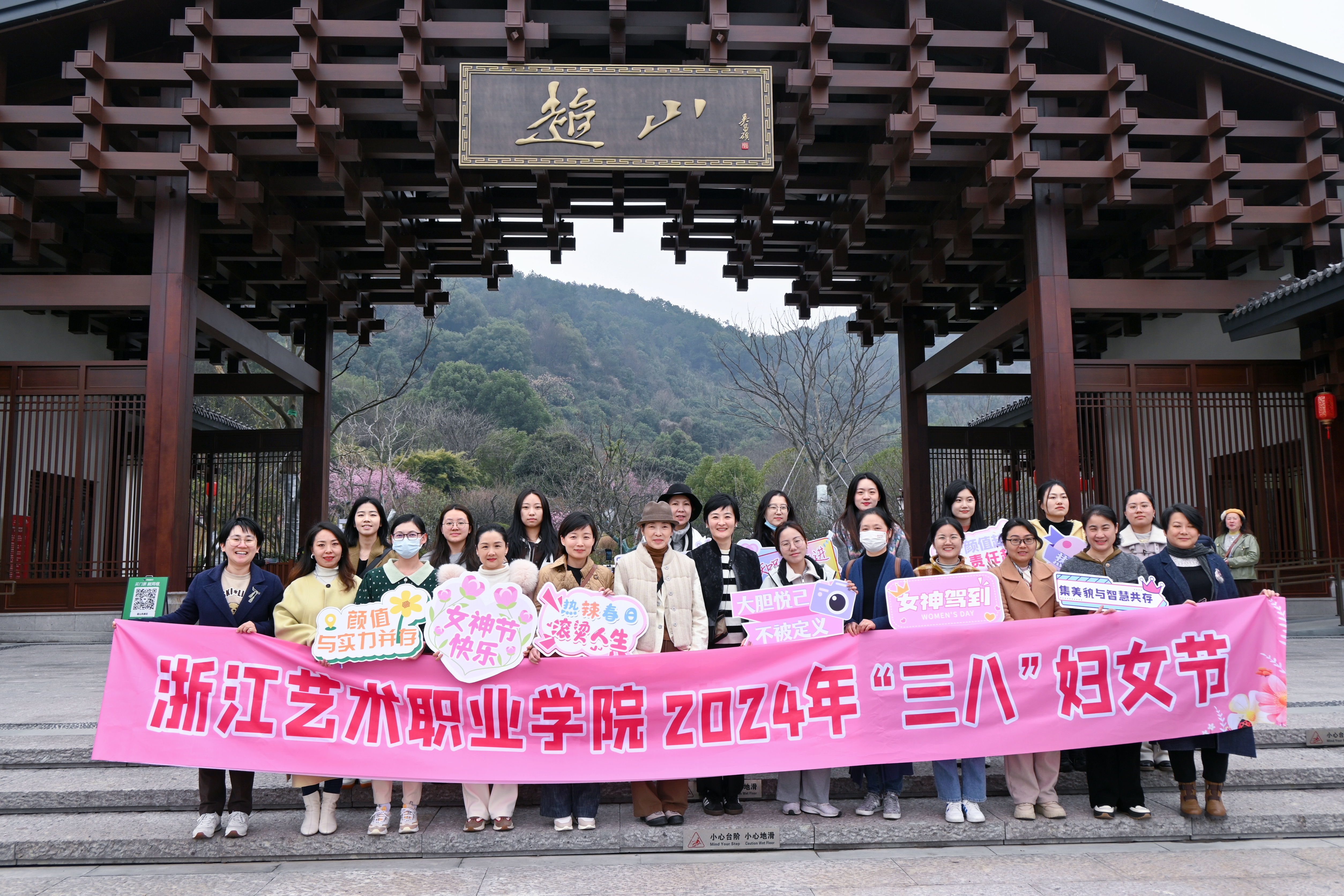 三月江南梅子青,春游已过画船横。春暖花开,从古至今就有赏春踏青传统。3月14日,浙江艺术职业学院三八妇女节活动在超山风景名胜区举行,活动主题为“携满园春色,迎双高验收”,全校约200位女教职员工赏春踏青。