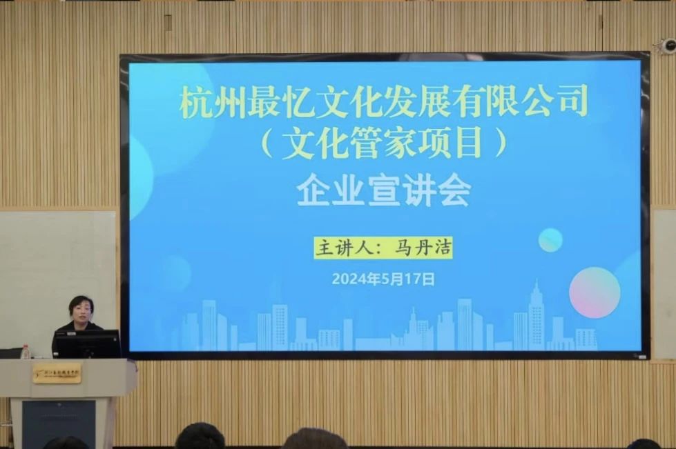 为持续推进高质量就业,充分调动毕业生就业积极性,增进企业和毕业生的双向了解。近日,演艺与教育学院针对公共文化服务与管理专业就业需求,特邀文化共富产业学院的主要合作方杭州市新青年歌舞团股份有限公司下属企业杭州市最忆文化发展有限公司总经理马丹洁来校开展有关文化管家的专题讲座、企业宣讲以及专场招聘。