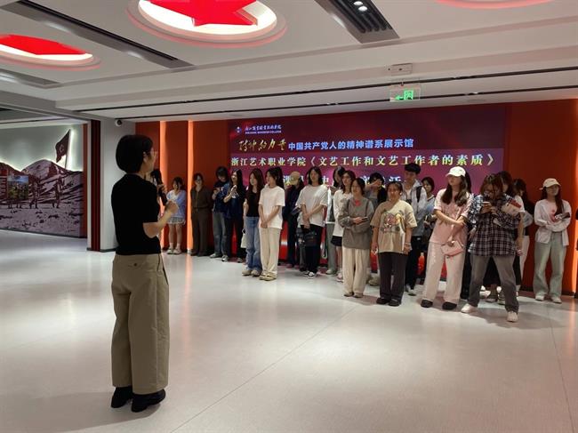 5月22日,《德艺双馨——文艺工作和文艺工作者的素质》课堂上的30余位同学在马克思主义学院直属党支部书记、院长王筱芽的带领下,走进浙江商业职业技术学院“精神的力量——中国共产党人的精神谱系展示馆”上了一堂党史教育现场教学课,以红课润心,在红馆启航,共话中国共产党百年奋斗的伟大历程,探寻百年大党永葆青春的精神密码。