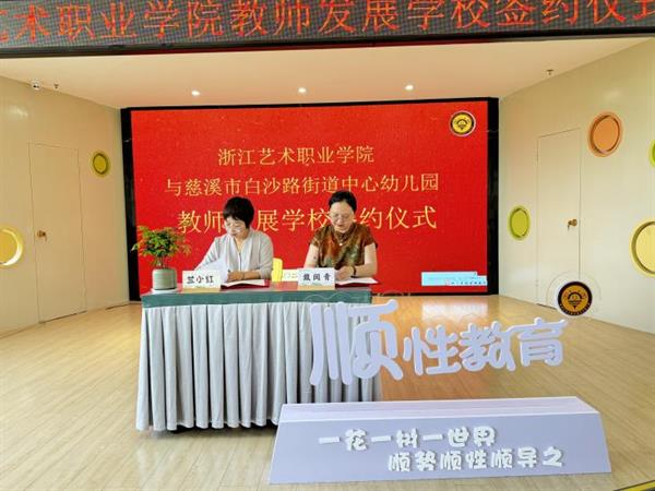 为贯彻落实浙江艺术职业学院访企拓岗促就业工作部署,切实开展2024届高校毕业生春季促就业攻坚行动,深化校企合作,拓宽毕业生实习和就业渠道,5月10日,演艺与教育学院党总支书记戴闵青、副书记陈莹,学前教育专业教研室主任卢茜及学前教育专业相关老师赴生源地慈溪市白沙路街道中心幼儿园开展“访企拓岗”工作,并签订教师发展学校协议。