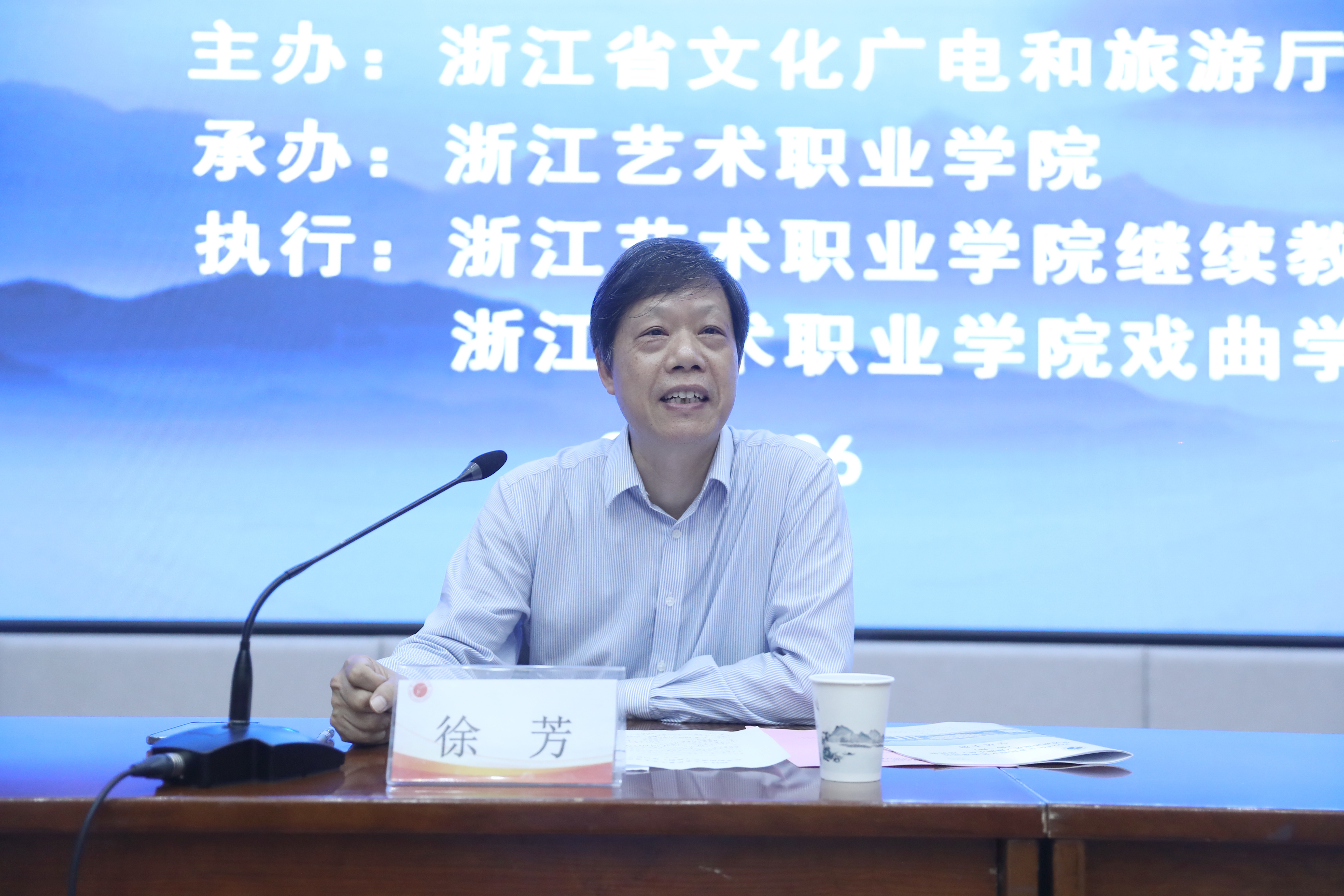 徐芳代表学校向参加本次学习的全体学员表示欢迎,向在座学员们阐述了本年度培训的重要意义。他表示,2024年是浙江“人才强省战略”实施20周年,在全面贯彻党的二十大精神和习近平总书记考察浙江重要讲话精神的背景下,2024年浙江省委“新春第一会”聚焦了人才强省建设,而作为“三支队伍”的组成部分,在践行“八八战略”、助力“两个先行”的道路上,民营剧团演职人员以流动演出的形式走街串巷,从街道社区到乡村田野,从文化礼堂到城镇剧院,以丰富灵活的作品将欢声笑语带给寻常百姓,自觉肩负起了艺术乡建、精神共富的文化重担,对民营文艺表演团体进行培训提升的意义和责任重大。他简要介绍了学校的办学史和戏曲教育史,以及作为全国基层文化队伍培训基地、文化和旅游部浙江培训基地、全国非遗传承人群研修研习培训基地、浙江省非物质文化遗产研究和传承基地的办学优势。他勉励大家珍惜机会,遵守纪律,学有所获。