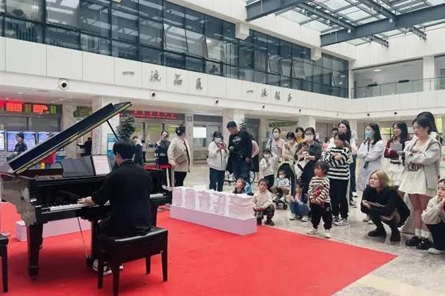 由班主任窦瑾、辅导员占悠雅带队,20键盘一贯师生走进浙大附属儿童医院,开展以“爱护孩童,春日有约”为主题的公益音乐会,20键盘一贯班精心挑选系列舒缓轻快的曲目进行钢琴演奏。